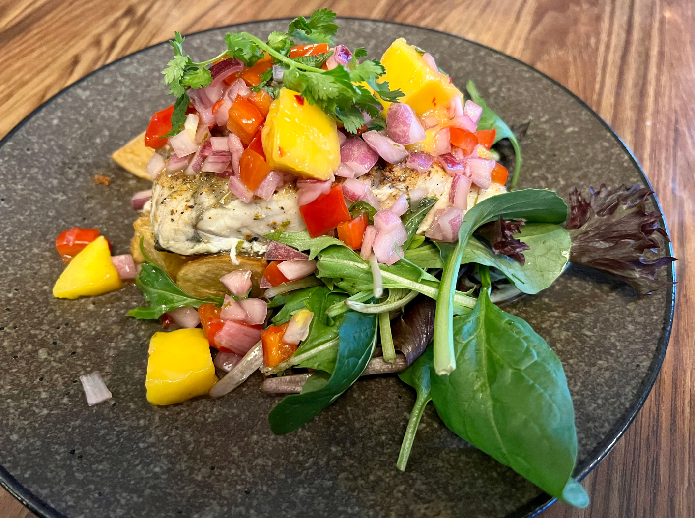 Flaky barramundi fillets topped with a vibrant mango salsa for a fresh and tropical twist on a fish dinner.